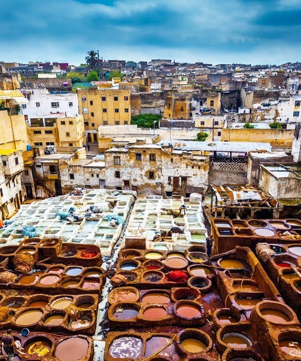 Your exploration of Morocco's oldest Imperial City, Fes, will begin at 9.30am when your guide greets you at your hotel. Fes was a crucial religious, intellectual, and cultural center and is still renowned for its traditional crafts. It boasts a high reputation for its university and is known as the "Athens of Africa" by many. Your tour will commence at the royal palace, where you'll see its eggshell façade, pine-green Saracen tiles, and tightly closed doors. Then, you'll visit the Jewish Quarter (Mellah) and the Blue Gate before exploring the old Medina (Fes El Bali). You'll wander through the Andalous Quarter and see the Andalous Mosque (built in the 9th century) and the Kairouyiene Mosque (built-in 857). The medina's tiny streets are filled with shops and workshops grouped by specialization. You'll also visit the Merinid Medersa (Bou Inania Medersa) – another mosque,Later, you'll head to the tanneries, where leather is made for jackets, bags, shoes, and more. You'll witness how animal skins are rendered supple and rot-proof. Lunch will be served in a local restaurant within the medina. After lunch, we'll take you on a drive to see the city's stunning panoramic views from uphill. Finally, you'll visit Fes' pottery scene – tin-glazed earthenware decorated with predominantly cobalt-blue designs. We'll return you to your hotel in the city for dinner and an overnight stay